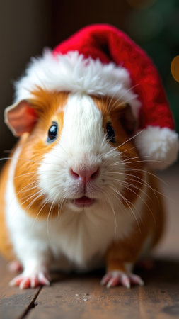 Adorable guinea pig wearing a Santa hat, bringing a dose of cuteness to the holiday season with its charming appearance, perfect for seasonal photography and holiday-themed content.