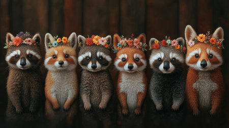 Surreal and imaginative digital depicting animals with human like fashion and expressions The creatures are dressed in various costumes masks and accessories