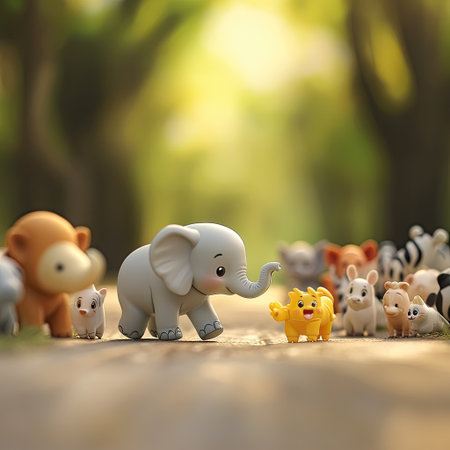 A vibrant lineup of toy animals, including a lion, zebra, and rabbit, creates a fun and educational visual for children's themes and decor ideas.