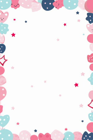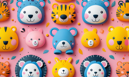 Whimsical pattern of various cartoon animals and shapes, with a cutout in the center. The design is simple and colorful, utilizing pastel shades.