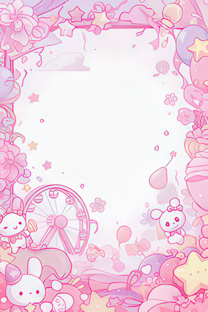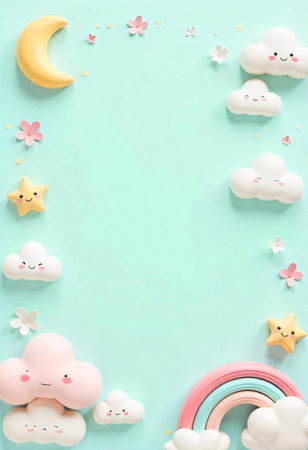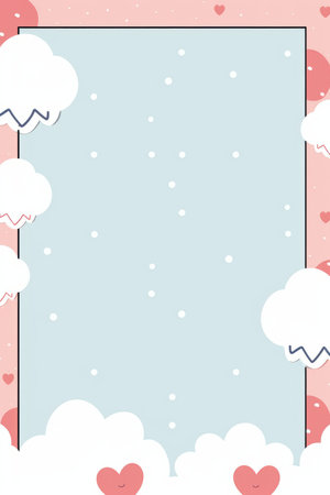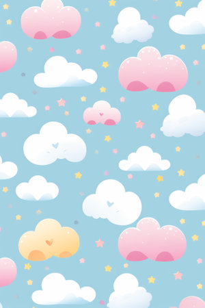 Imagine a whimsical illustration with fluffy pastel clouds and sparkling stars on a soft pink background, creating an enchanting fantasythemed design that inspires dreams and imagination