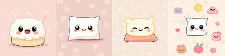 Cute pillow set. Cartoon style. Vector illustration for your design
