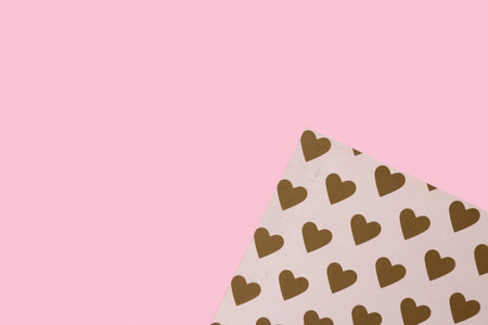 Texture background of trendy colors: pink and gold and heart pattern papers in minimal concept