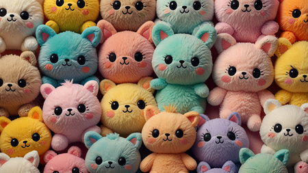 Adorable fluffy plush toys in vibrant colors, close-up view