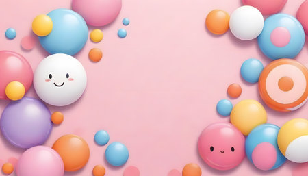 This delightful image features a collection of cute and colorful playful characters with smiles set against a soft blue background, perfect for child-friendly themes.