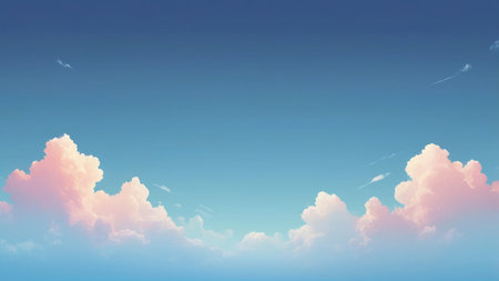 Serene Blue Summer Sky with Fluffy Cumulus Clouds and Bright Sunlight for Peaceful Designs