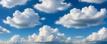 Fluffy white clouds scattered across a clear blue sky on a sunny day, creating a serene and peaceful atmosphere