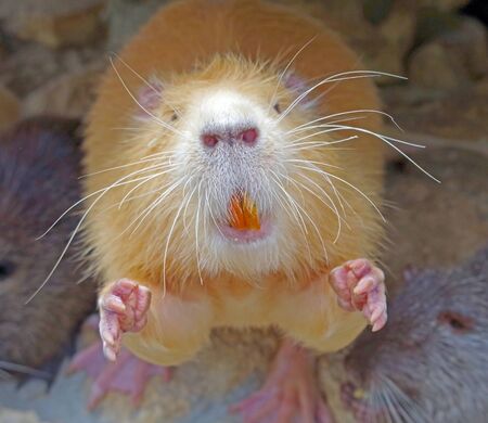 Nutria close up. Very funny coypu portrait. Posing nutria. Zoo animals
