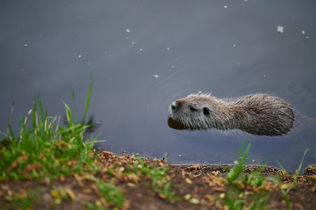 Myocastor coypus, single mammal in it's natural habitat - selective focus