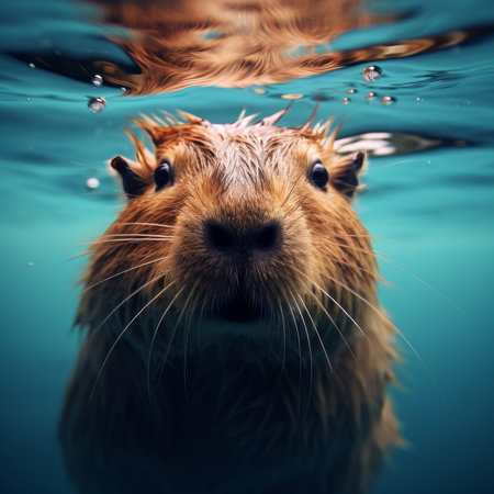 closeup of a coypu walking through the water, a semi aquatic rodent from south America