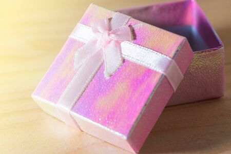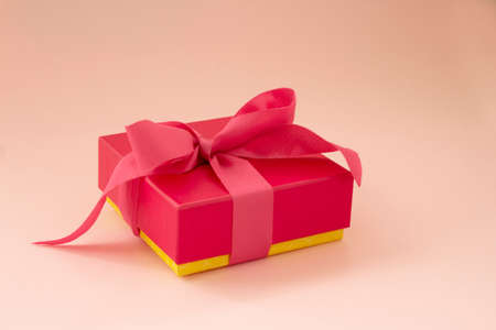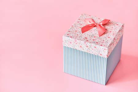 Pink gift with pink ribbon. Gift love concept. Valentines day, mother's day.