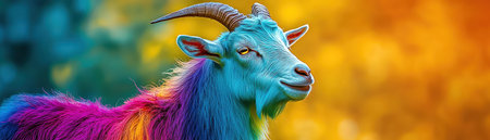 A happy rainbowcolored goat, looking cheerful with a vibrant mane