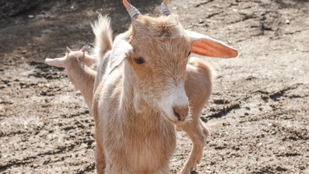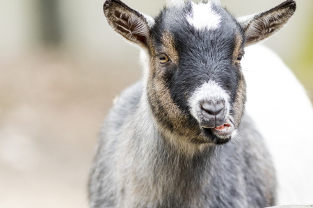 Portrait of young goat close up on yard