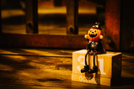 Halloween festival Head Doll Pumpkins haunted spooky Decoration . Blank space available for your text.