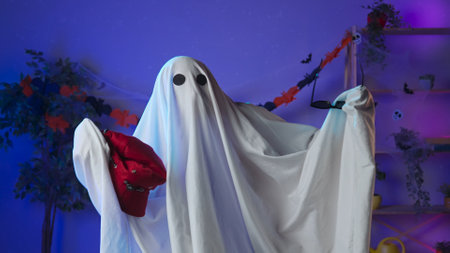 Halloween and international celebration concept. Halloween character in ghost costume