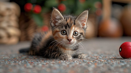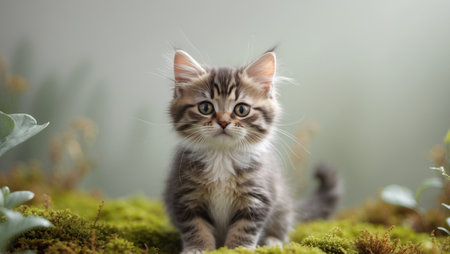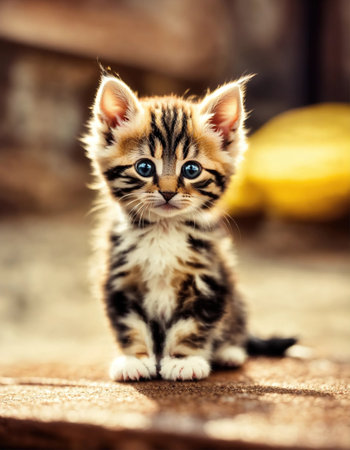 This adorable tabby kitten exudes charm with its big eyes and playful demeanor. Perfect for capturing the joy and innocence of a young pet.