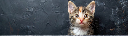 Adorable Kitten with Striped Fur Sitting Against a Dark Textured Background Looking Curious and Innocent Cute Domestic Cat Pet Photography for Animal Lovers, Wallpapers, and Calendars AI Generative