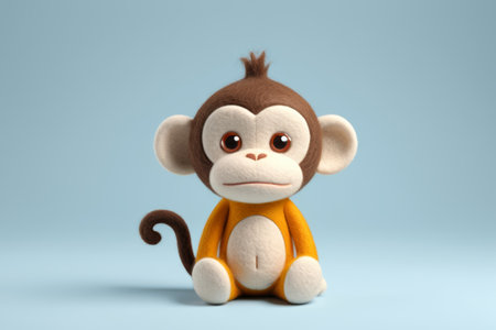 a little knitted monkey is seen sitting on a vibrant blue background in this ultraviolet photography style. the image showcases moody tonal contrasts, resulting in a visually striking and high-definition (uhd) picture. with its minimalist illustrator touch, this non-representational photograph captures the essence of violet and indigo hues, reminiscent of a national geographic photo. ai generated