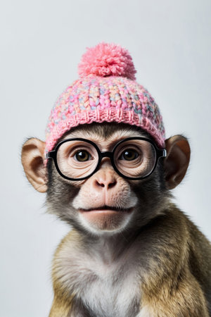 AI Generated. A Cute Monkey Wearing Glasses and a Knitted Hat