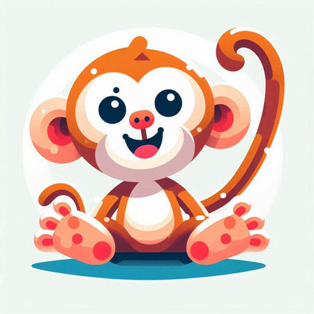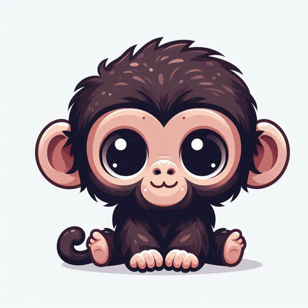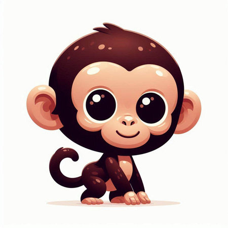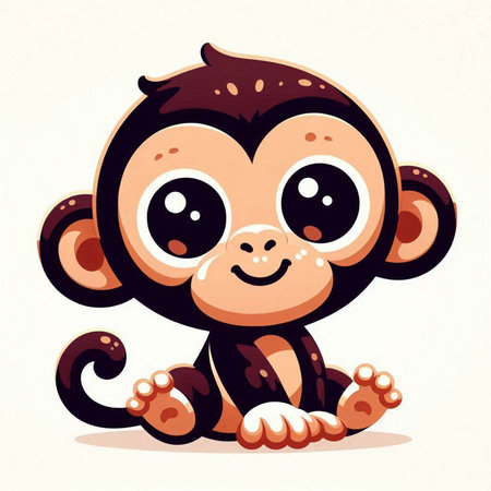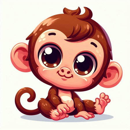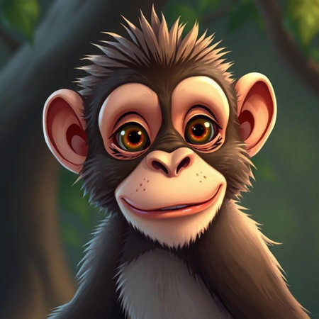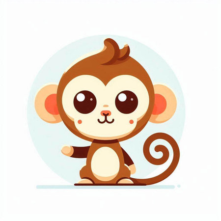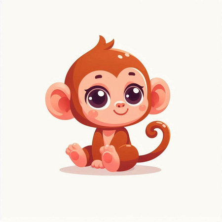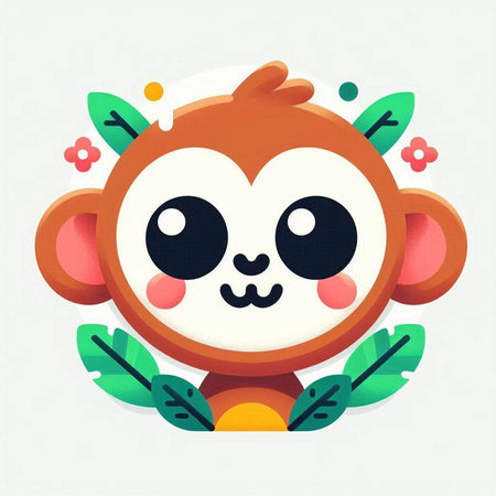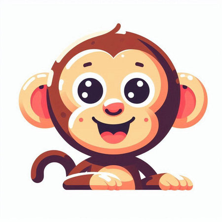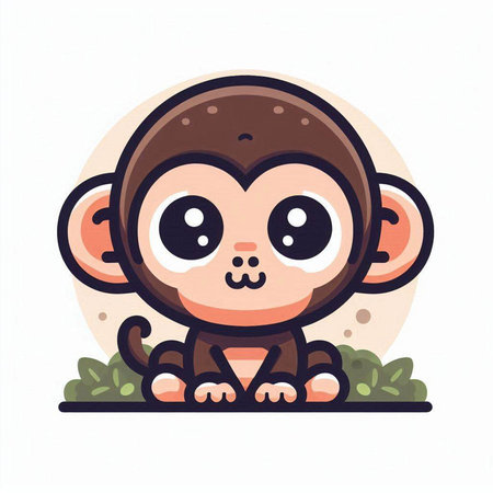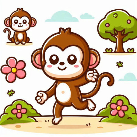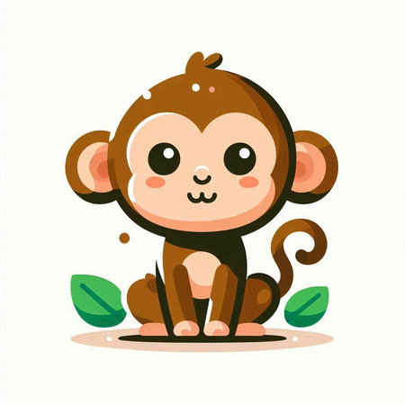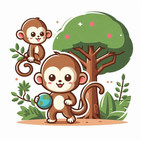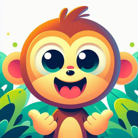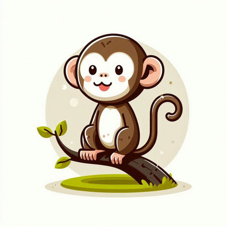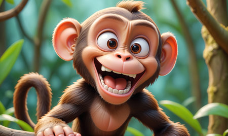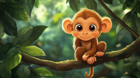 This charming illustration features a cute animated monkey sitting on a branch, surrounded by lush green foliage. Its round eyes and joyful expression create an enchanting scene perfect for children's themes.