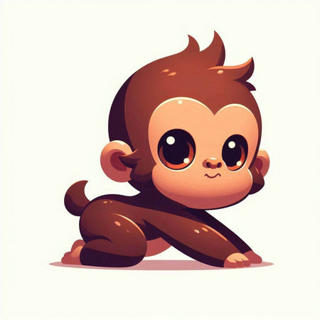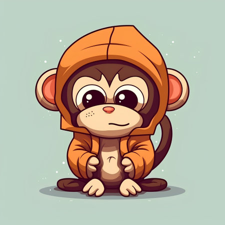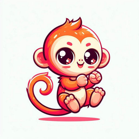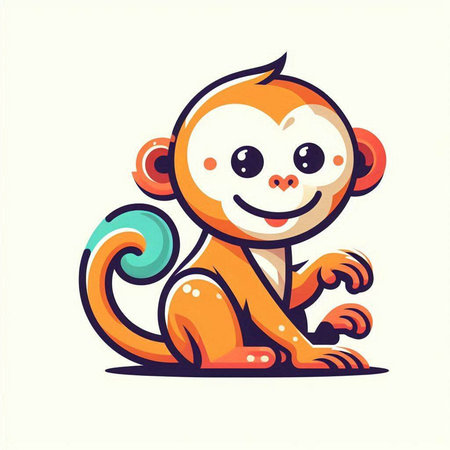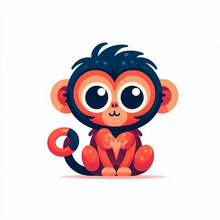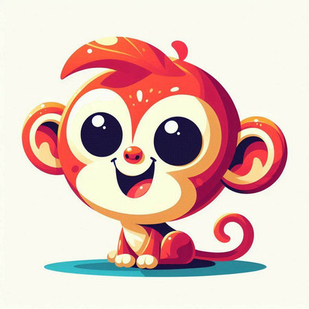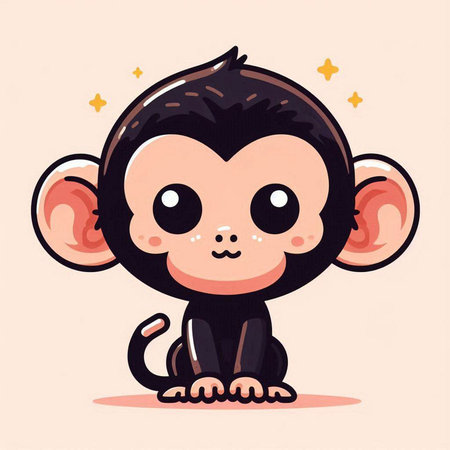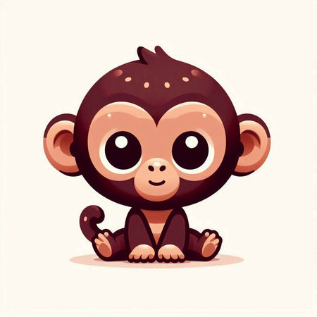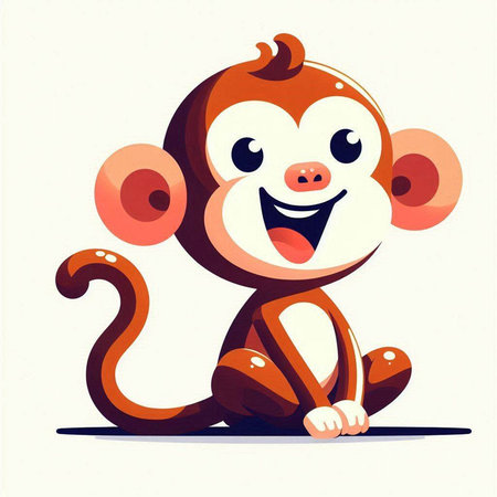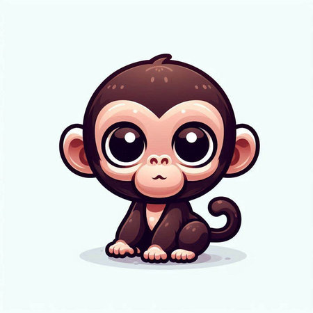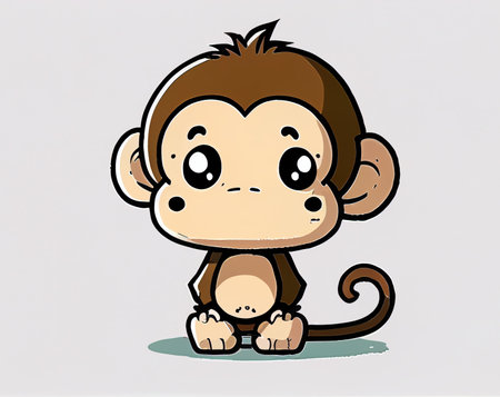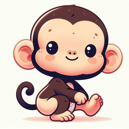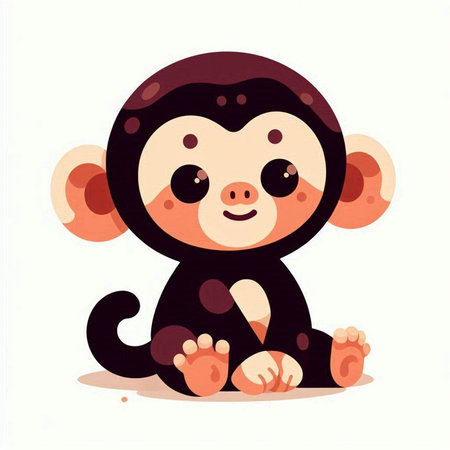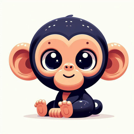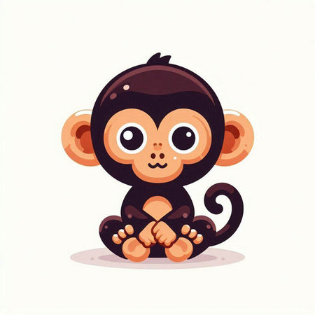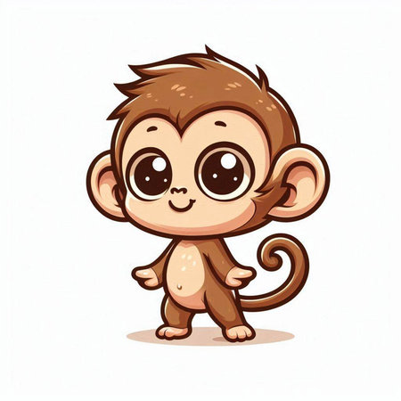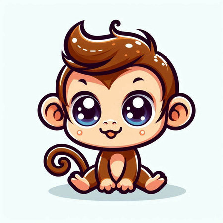This charming illustration features a cute animated monkey sitting on a branch, surrounded by lush green foliage. Its round eyes and joyful expression create an enchanting scene perfect for children's themes.