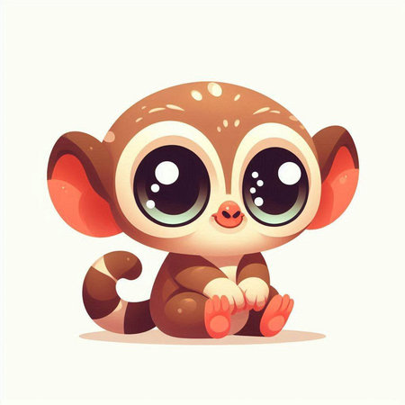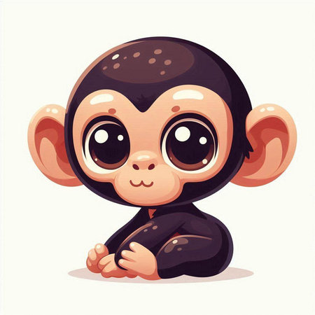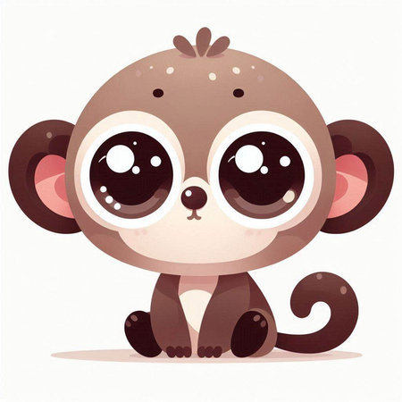 cute cartoon monkey with big eyes on white background, vector illustration