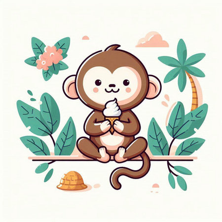 Monkey with ice cream. Vector illustration of a cute monkey.