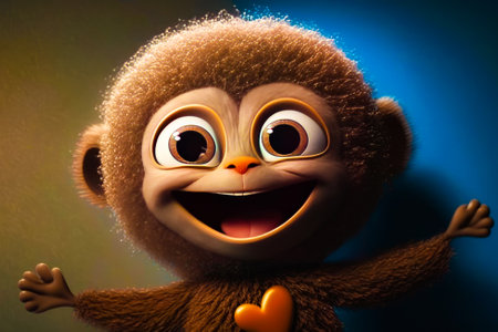 Cartoon monkey with big smile on his face. Generative AI.