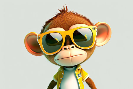 Funny monkey wearing sunglasses on a colorful background. Childish character. Generative AI