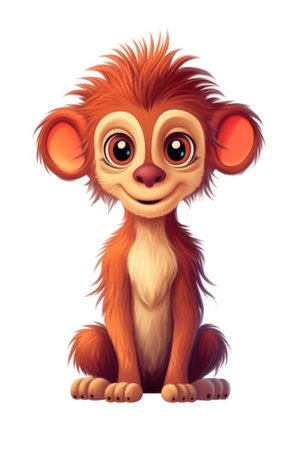 Cute baby Baboon in Cartoon Style on white background - generated with generative AI