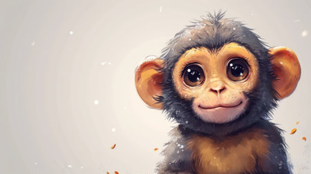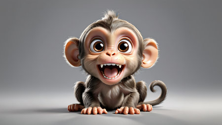 Cute Cartoon Monkey with Big Eyes and Open Mouth. Generative Ai