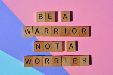 Be a warrior, not a worrier, words in wood alphabet letters isolated on colorful background