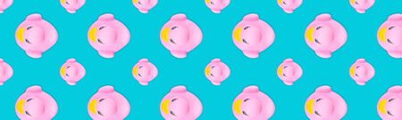 Pattern design. Rubber yellow inflatable ducks isolated on white