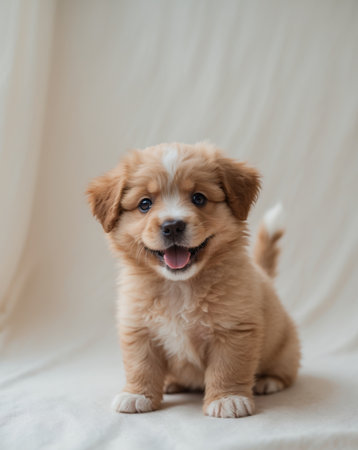 AI Generated. Cute puppy sitting playfully with an innocent expression that radiates pure joy and happiness