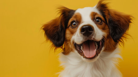 AI Generated. Cute fluffy dog with a joyful expression in a colorful background setting