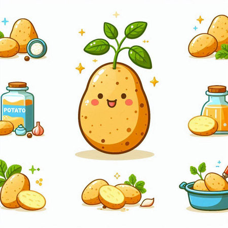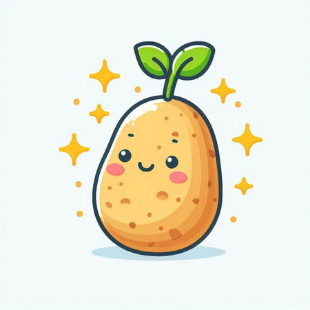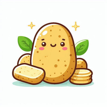 Cute and Charming Potato Character Vector Cartoon Icon with Big Eyes for Creative Food Designs