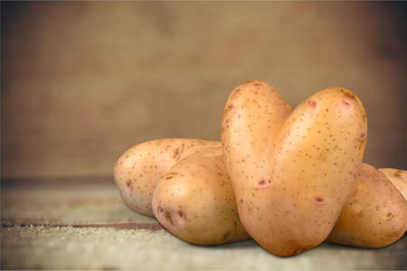 Creative shot of Potatoes with a unique cut i.e. of Heart shape in it. Concept of health care and medical along with heart, cholesterol and weight-loss by avoiding the potatoes and its products.;