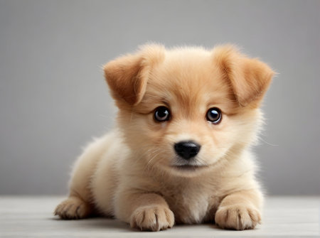 This adorable puppy sits against a plain background, exuding innocence and charm. Perfect for pet-themed projects, this image captures the essence of warmth and companionship.