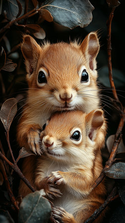 Fun moments in the forest: a little squirrel and her mom.