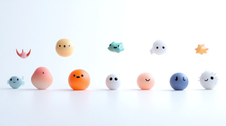 A vibrant collection of small, cute figurines. Each one unique and full of character.
