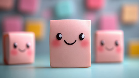 Sticky-note emoji with blushing cheeks, tilted playfully with soft shadow, cute and friendly expression --no text,letters,logo