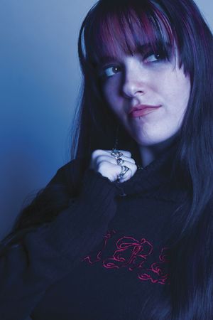 young woman with blue hair