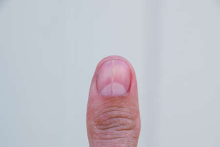 Forked nail on the thumb. Dilation of the nail, traumatic pathology. The nail is divided in half.