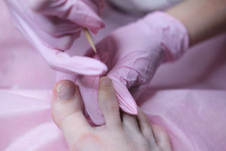 pedicure, pedicure process professional in the beauty salon, clean cuticles and nail on his feet, Treatment and Foot Care
