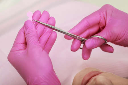 Specialist eyelashes in the beauty salon increases eyelashes client