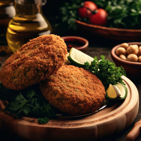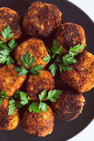 Delicious vegetarian cutlets. Front view.