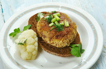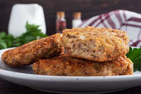Buckwheat cutlets with cheese and parsley on a plate Healthy diet food