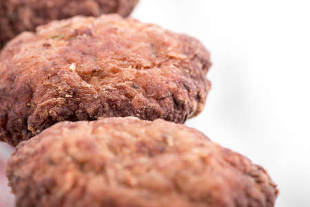Homemade cutlets on a white plate and white background. liver cutlets on a light plate. close up