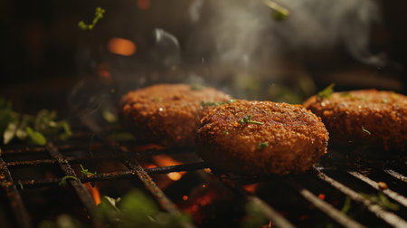 Meat cutlets on the grill, close-up, shallow depth of field