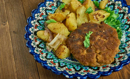 Cutlet with fried potatoes close up